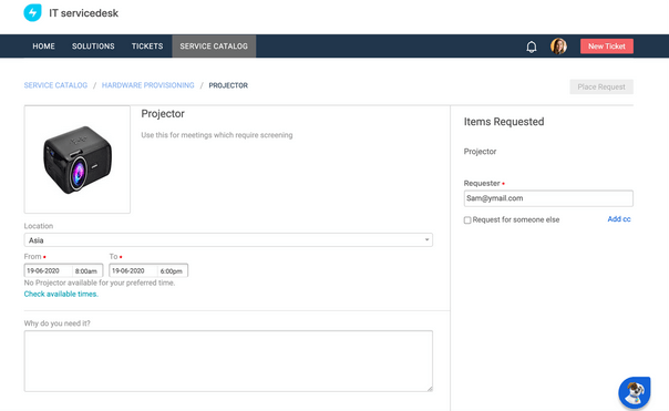 Self-service is a great way to enable IT agents to save time that is usually spent doing mundane tasks and empower all employees in an organization to help themselves by raising a ticket on their own.