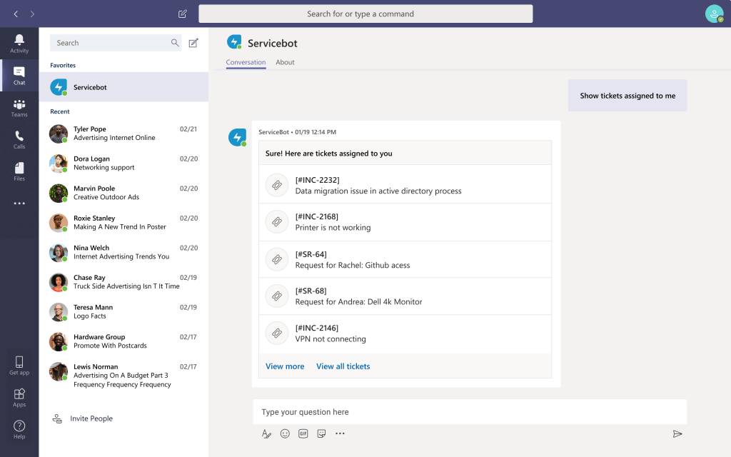 Freshservice virtual agent is pre-trained on the most common IT service management (ITSM) and Enterprise service management (ESM) use cases using our AI-powered platform – Freddy. Employees can get instant response and resolution to their IT issues, while agents save more time and can focus on resolving complex and high-value issues.
