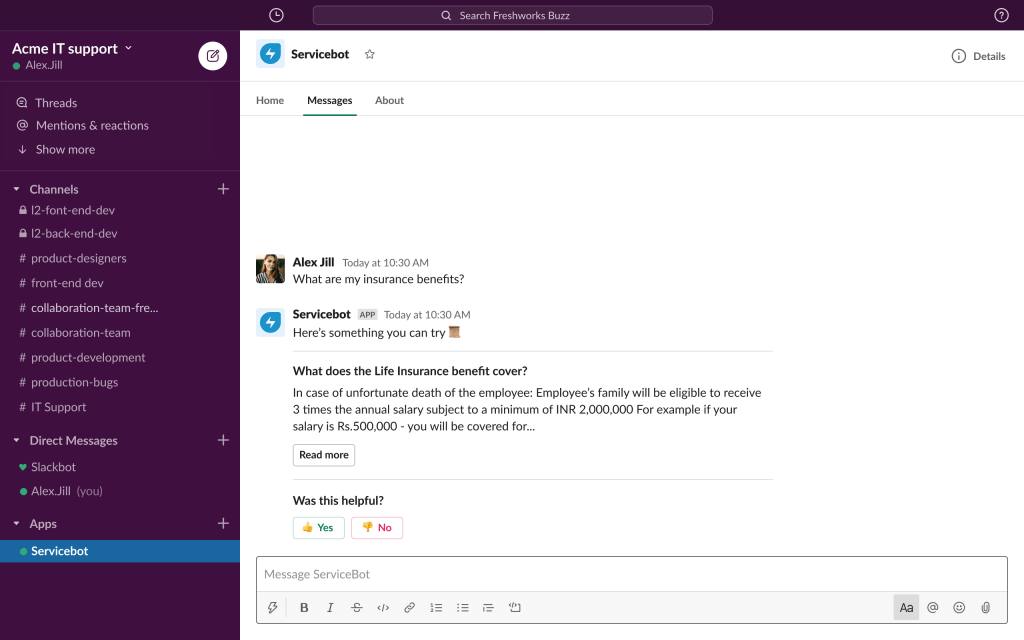 When support is available on channels like chat, phone, email, and virtual agent, it makes remote working easier. Moreover, Freshservice can be integrated with collaboration tools such as Slack and Microsoft Teams.