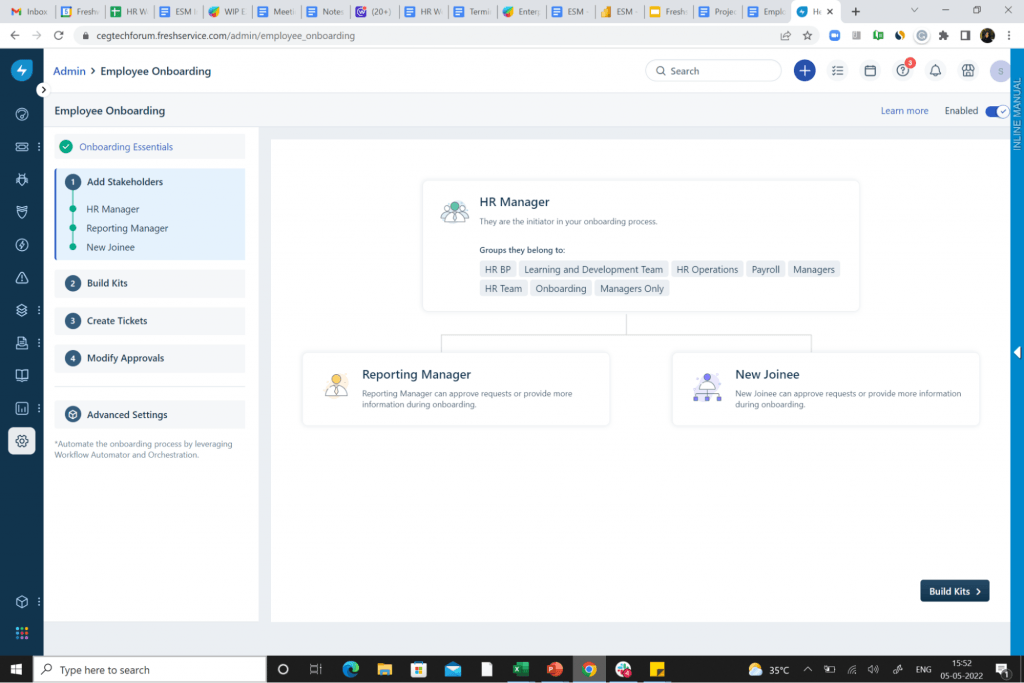 Multiple key stakeholders, such as the Reporting manager, HR manager, and IT manager can all be added to the portal as part of the approval process. In case of bulk onboarding, HR teams can upload employee information into the portal and onboarding forms can be sent to respective managers and employees.