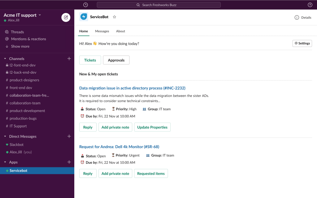 When support is available on channels like chat, phone, email, and virtual agent, it makes remote working easier. Moreover, Freshservice can be integrated with collaboration tools such as Slack and Microsoft Teams.